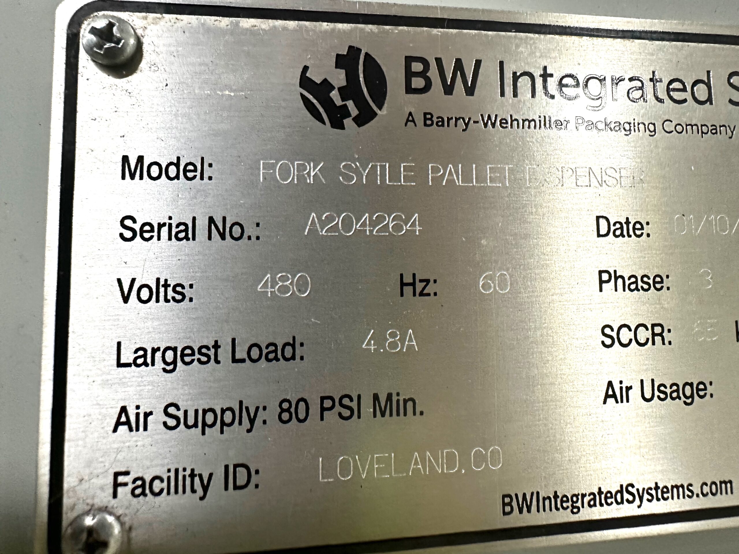 Barry Wehmiller Fork Style Pallet Dispenser – New 2020