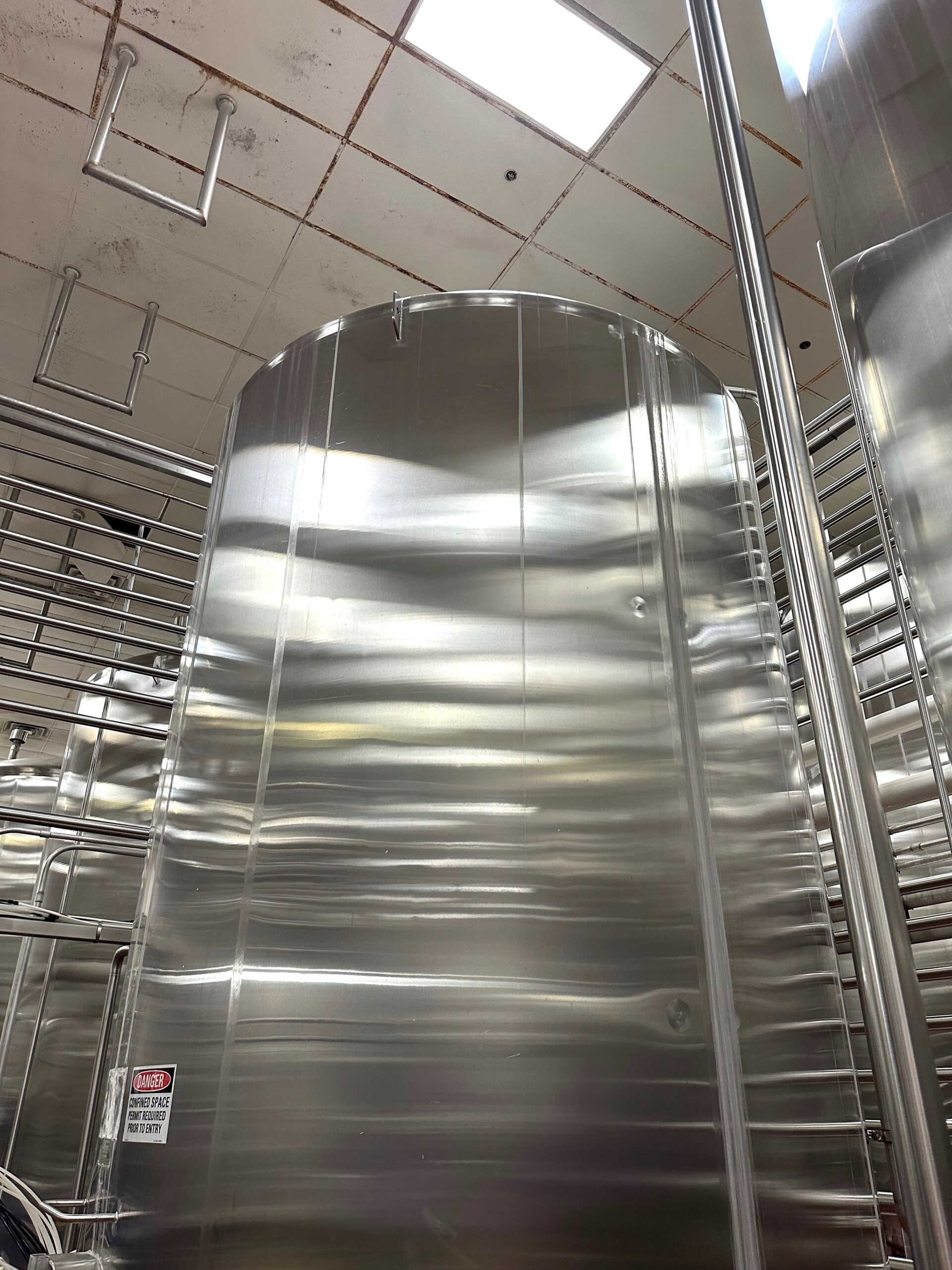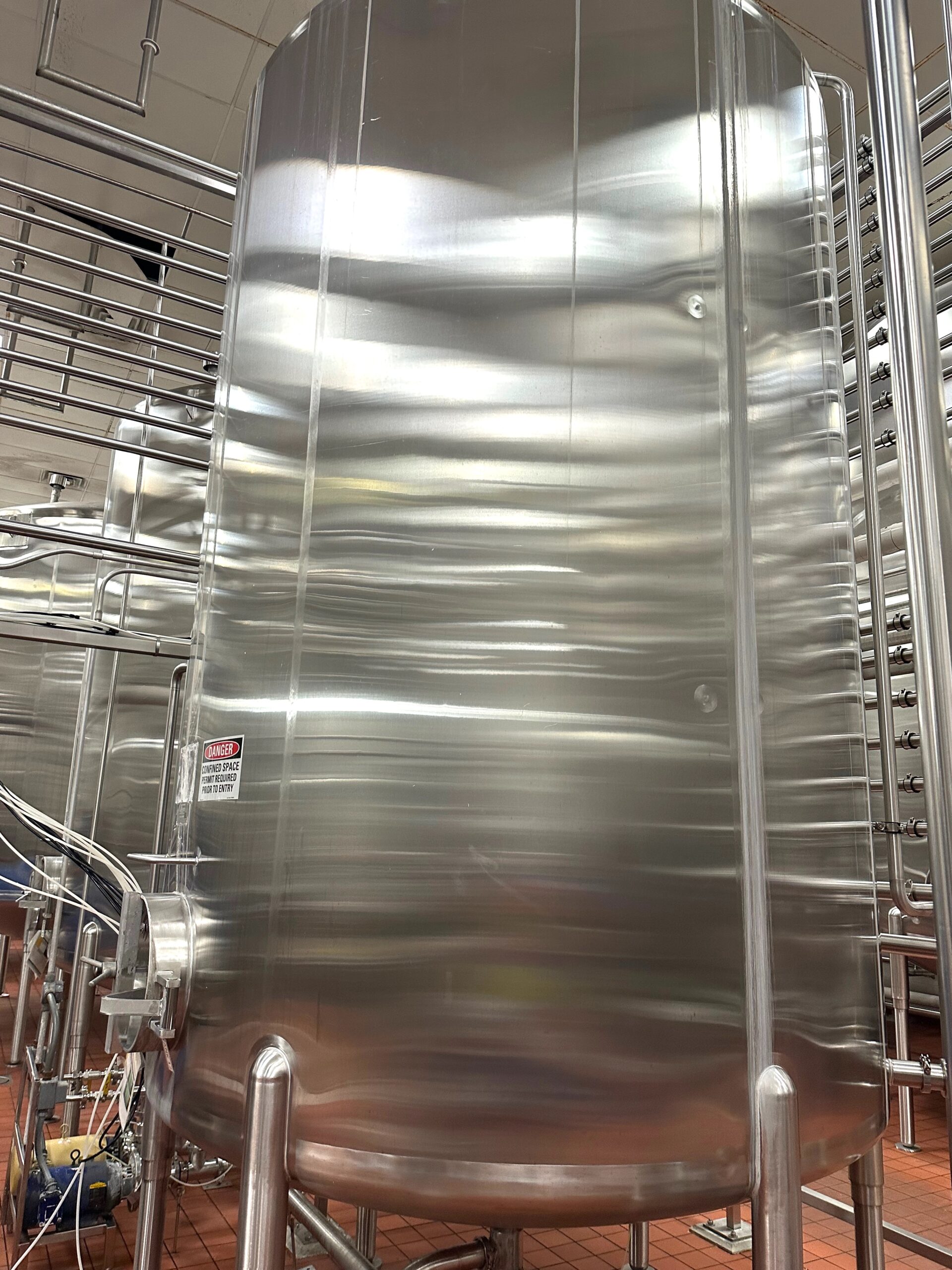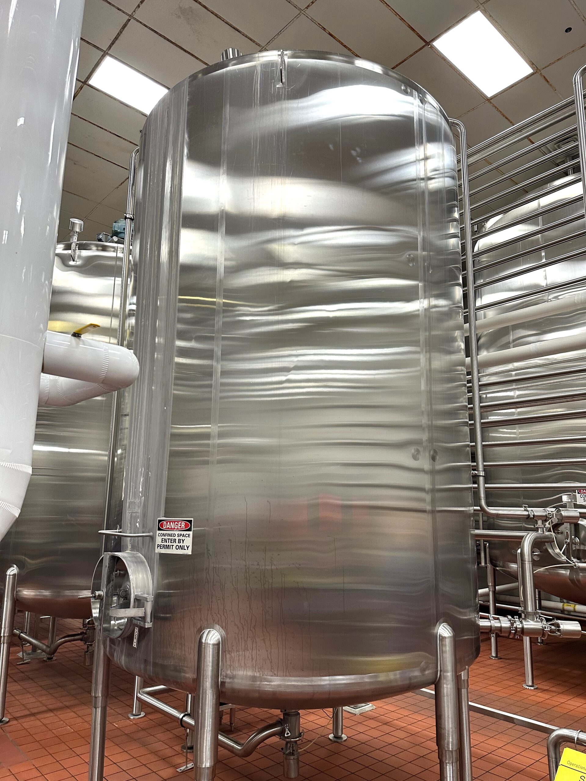 304 Stainless Steel, #4 Polish, Dish Top, Dish Bottom, Side Manhole, 3″ Center Outlet at Bottom, 5 Horsepower Center Mounted Top Agitator with 2 Turbine Blades, Internal Baffle, Dual CIP Sprayball