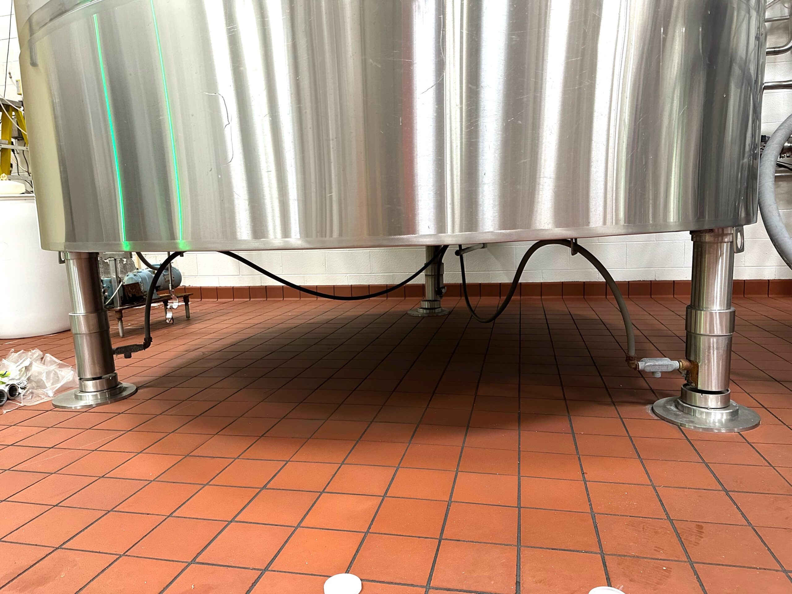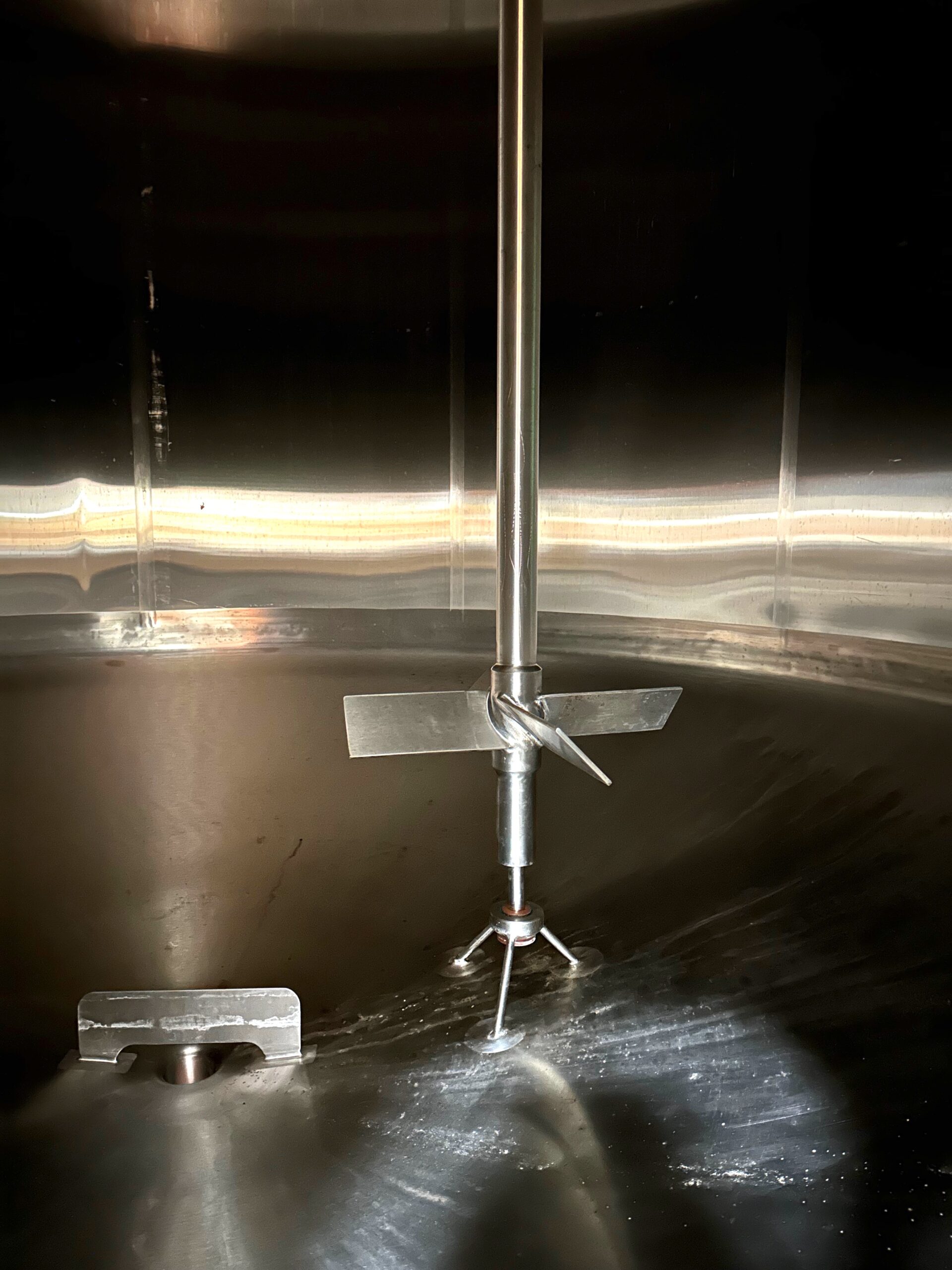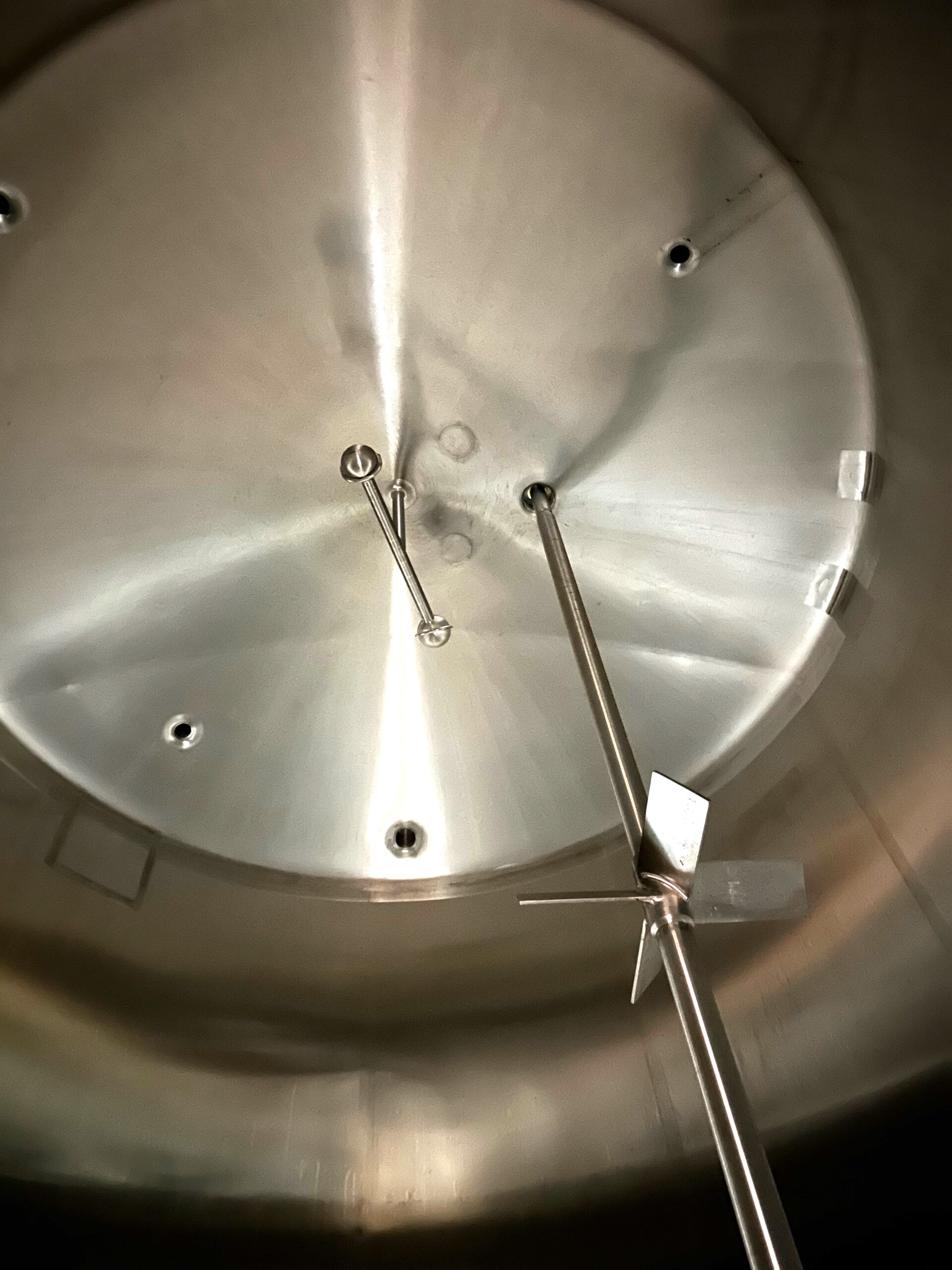 316 Stainless Steel, #4 Polish, Dish Top, Dish Bottom, Side Manhole, 3″ Center Outlet at Bottom, 5 Horsepower Center Mounted Top Agitator with 4 Bladed Axial Turbines, Dual CIP Sprayball, Mounted on Load Cells