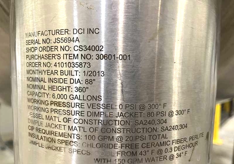 Working pressure dimple jacket: 80 psi at 300ºF.
