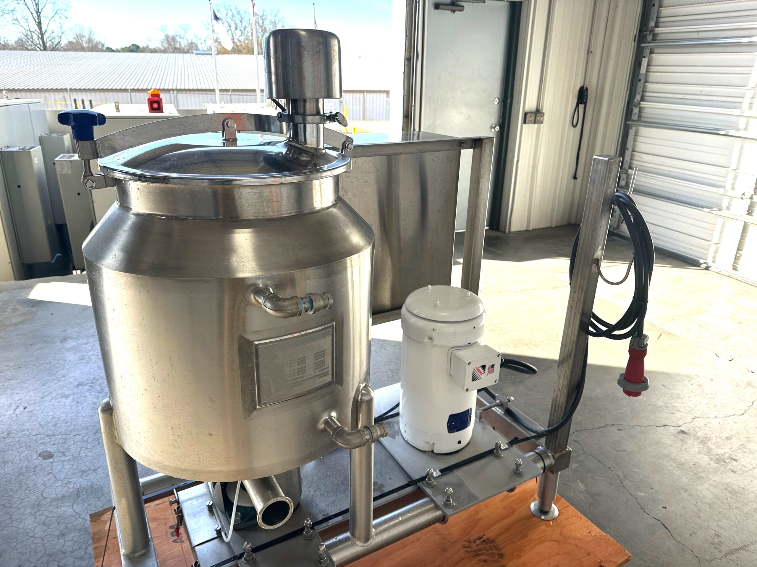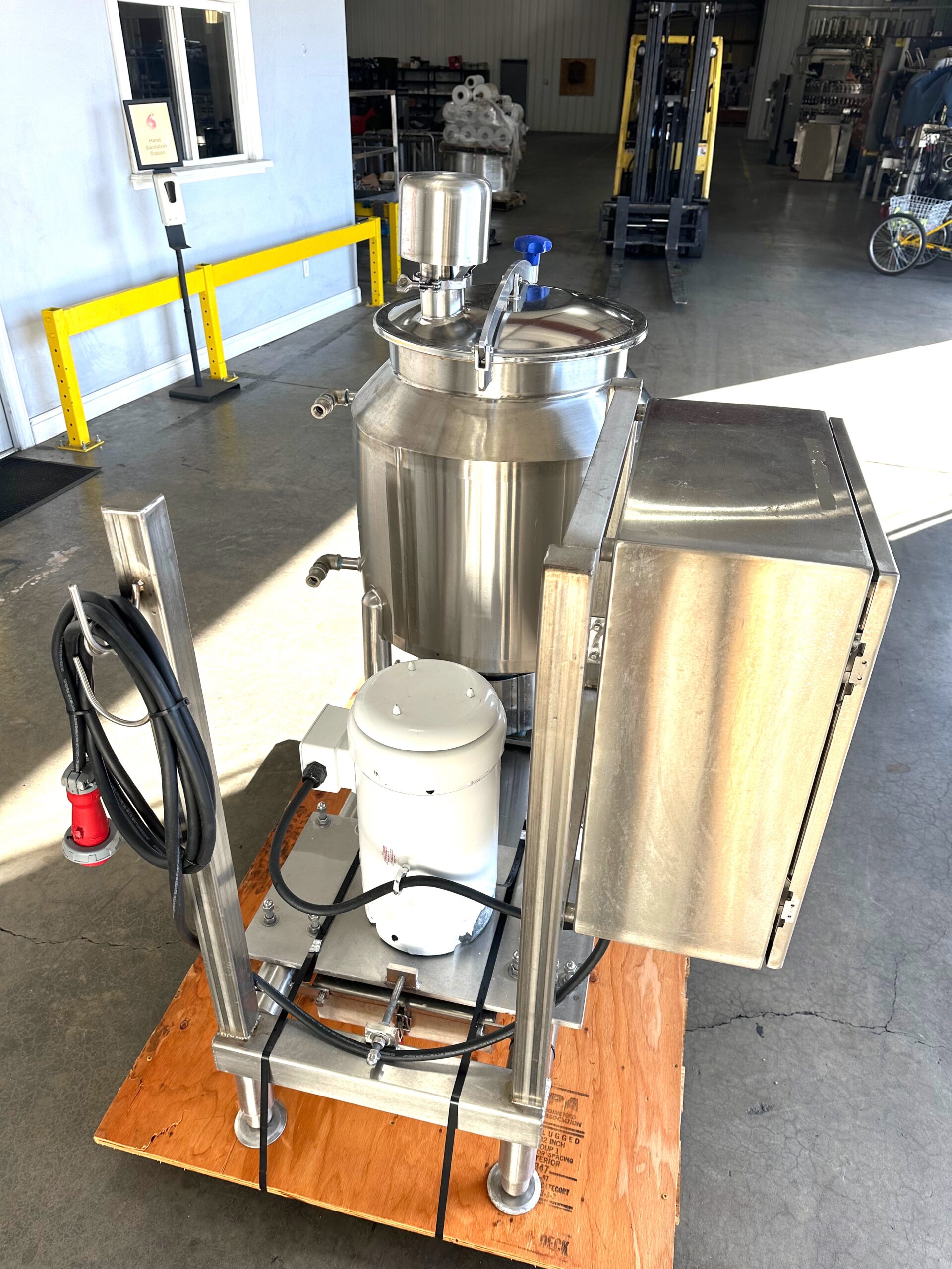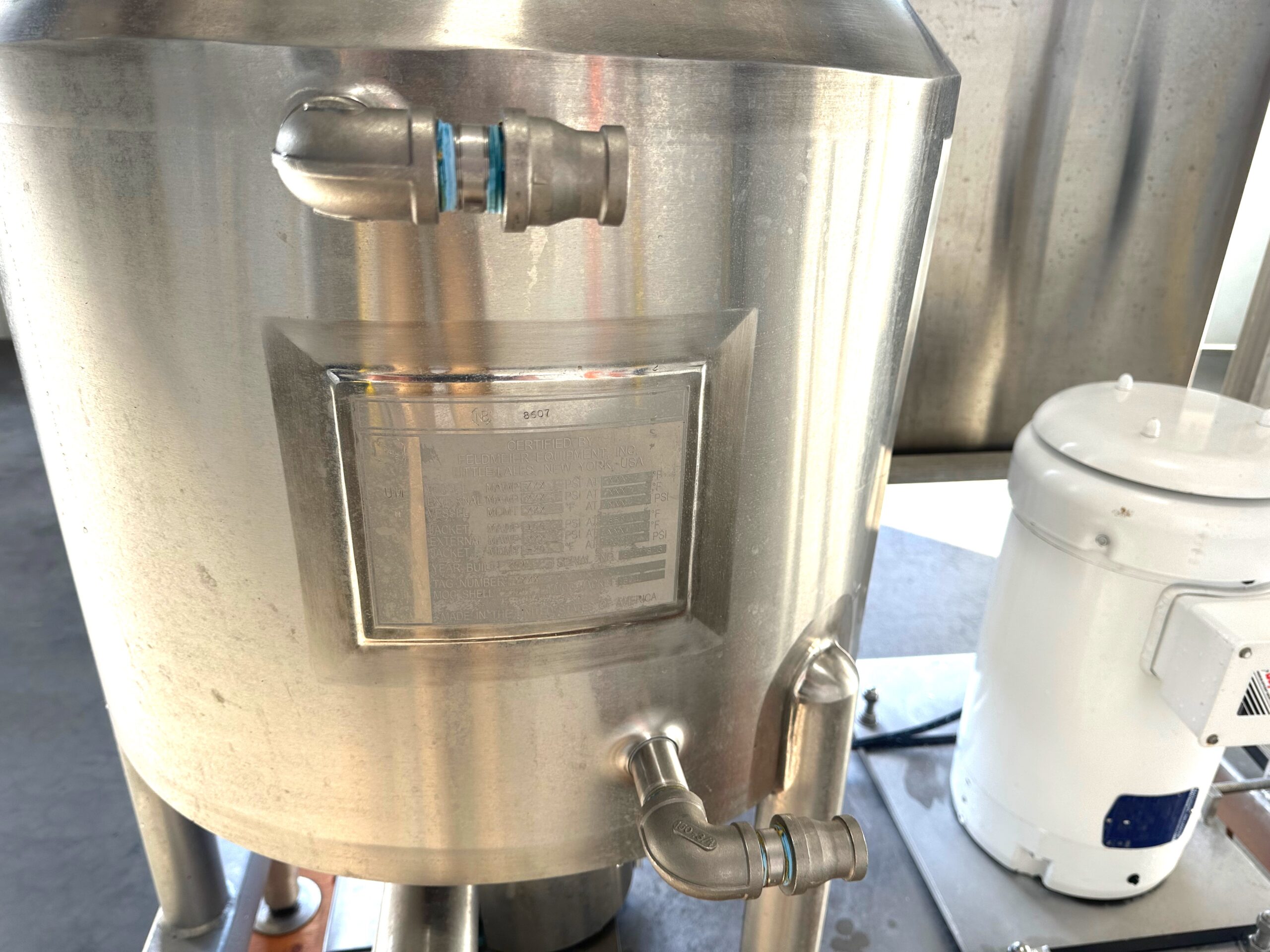 Stainless Steel Construction, Side Mounted 10 HP Motor Drive, Condition is Very Good and Clean, Top Manway, Operator Start/Stop and Speed Control for the Motor, Control Panel with Allen Bradley 523 VFD Drive (10HP Rating), Jacketed to 350ºF at 100 PSI