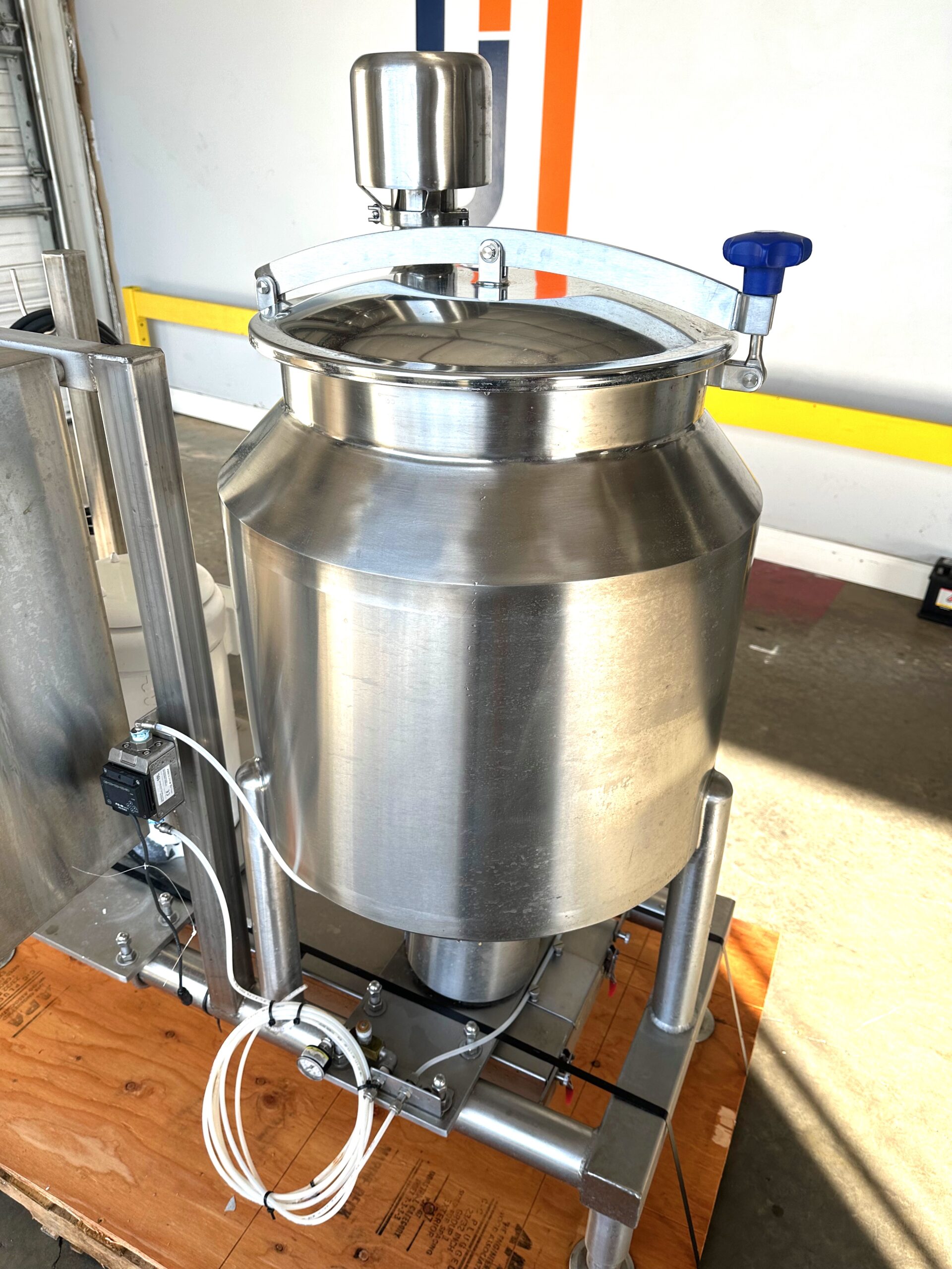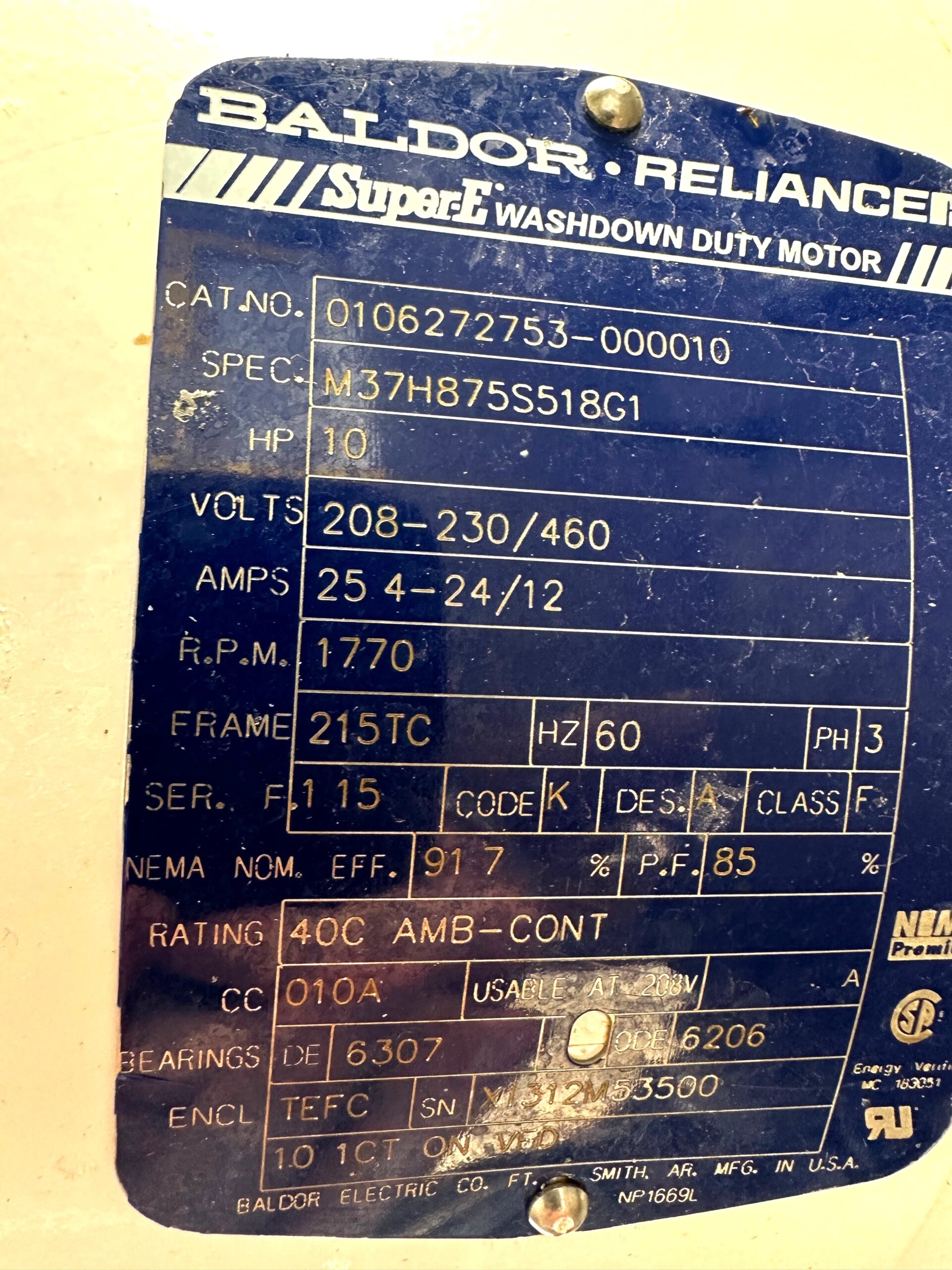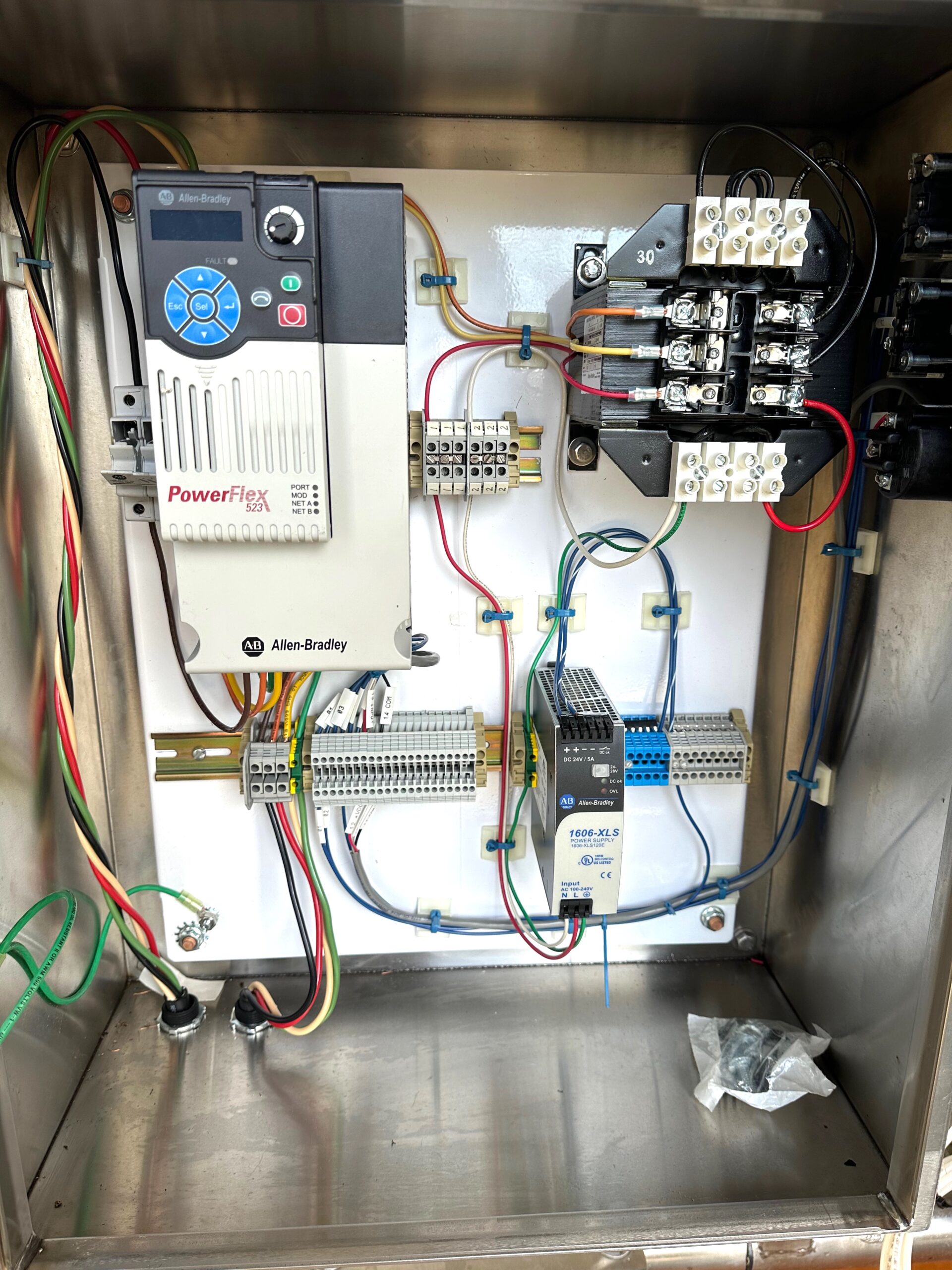Stainless Steel Construction, Side Mounted 10 HP Motor Drive, Condition is Very Good and Clean, Top Manway, Operator Start/Stop and Speed Control for the Motor, Control Panel with Allen Bradley 523 VFD Drive (10HP Rating), Jacketed to 350ºF at 100 PSI