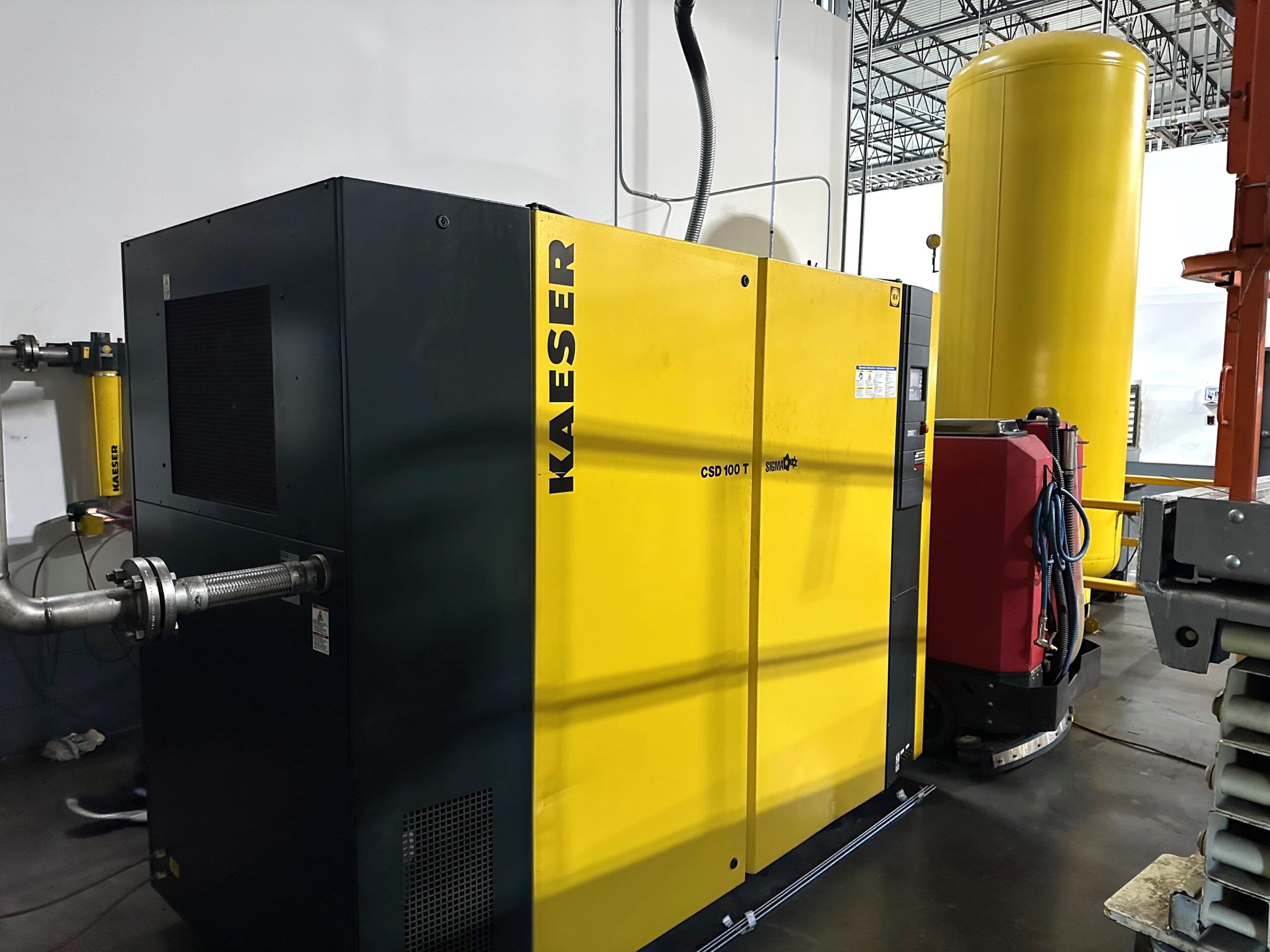 Kaeser’s 100 hp rotary screw compressors in the CSD series with direct drive incorporate all standard Kaeser features, such as powder-coated enclosures, premium efficiency TEFC motors, and the SIGMA PROFILE airend. These units are available with integrated dryers and/or variable speed drive options.