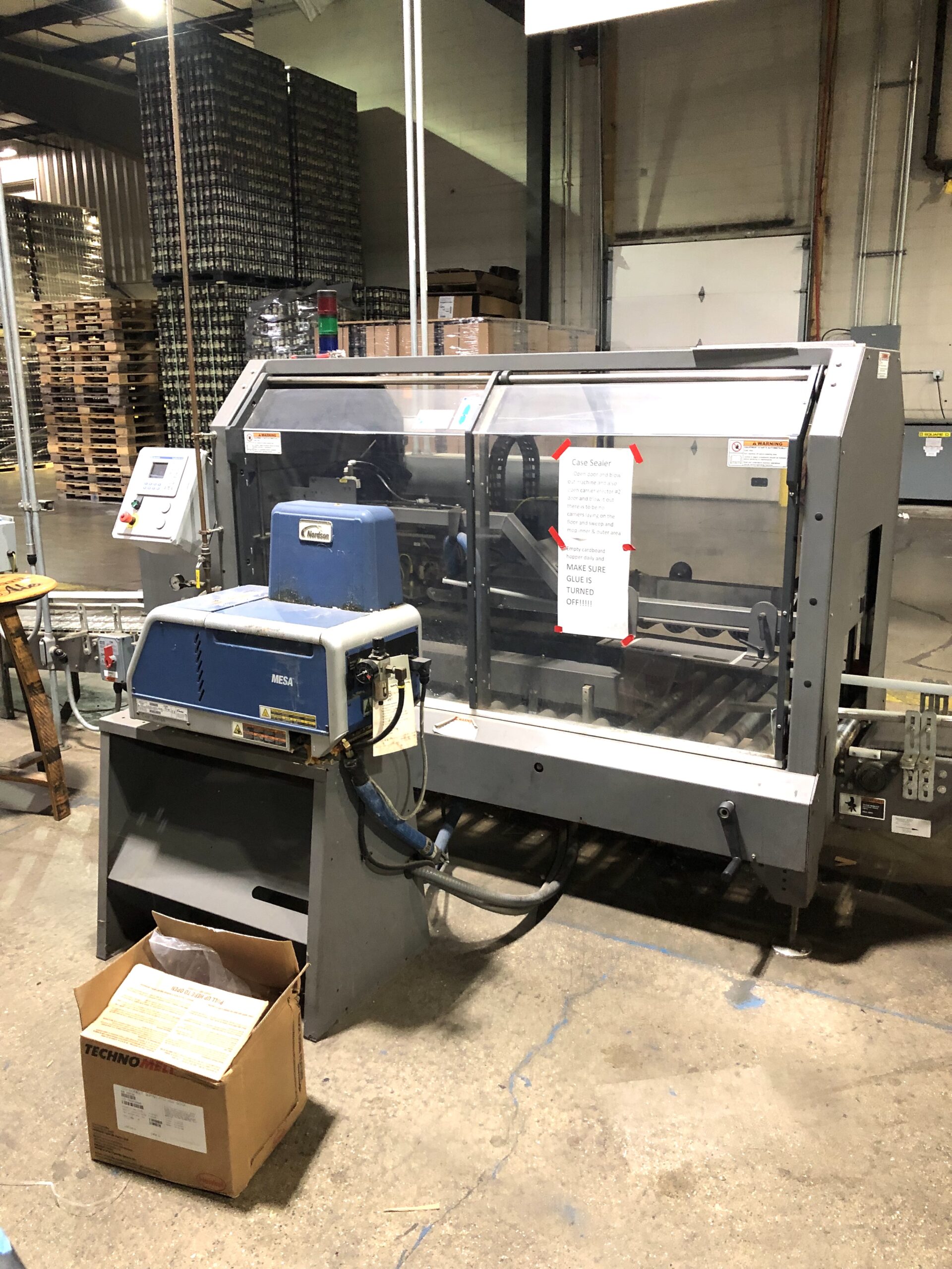 Unit was purchased new in 2013, Utilizes Glue to Seal Top Four Flaps, Nordson Mesa Glue Unit, Speeds up to 25 cases per minute (depending on case size), Allen Bradley CompactLogix L24ER PLC with Panelview Plus 400 Touch Screen, Adjustable machine, 460 Voltage, 60HZ, 3PH