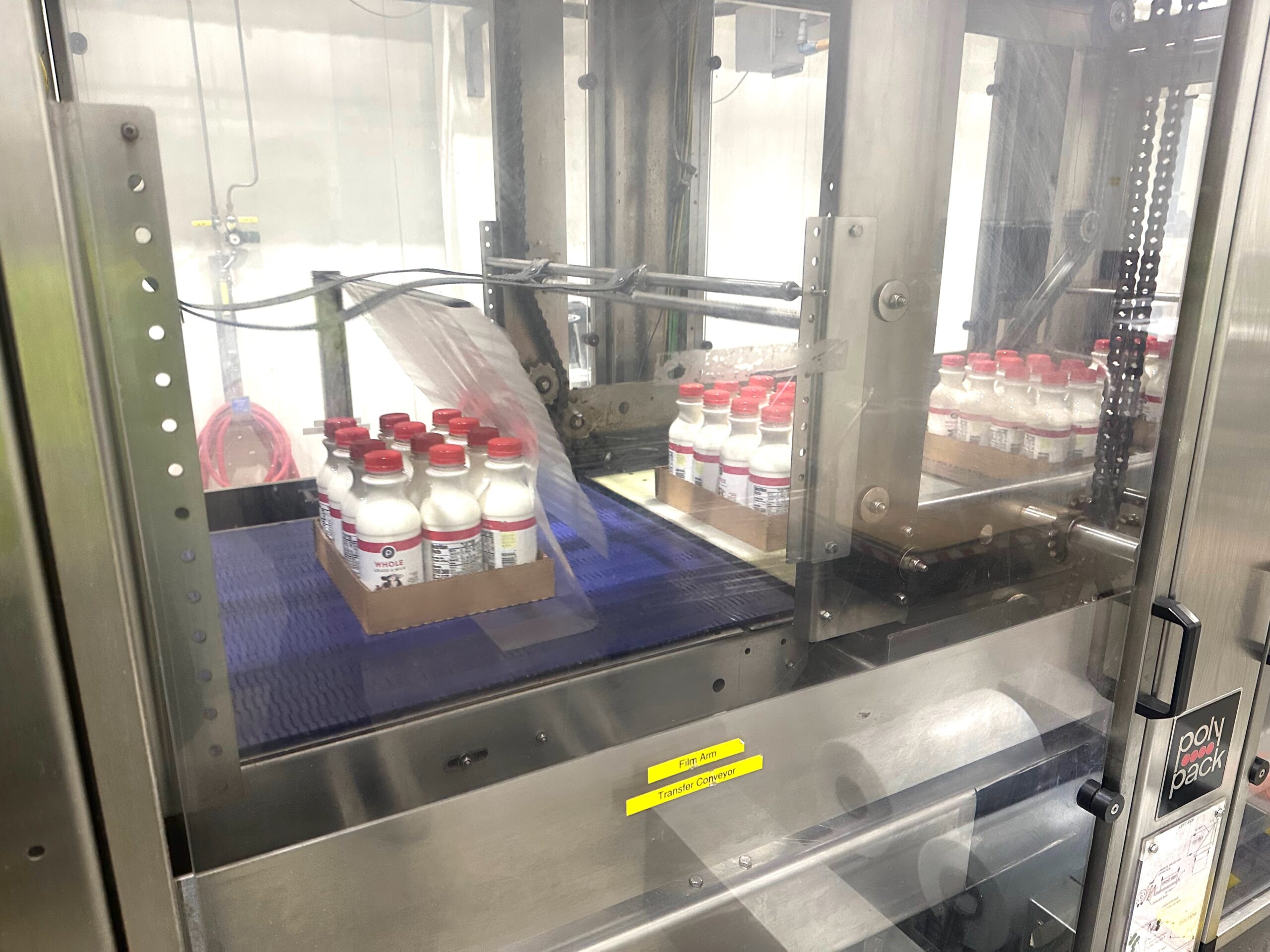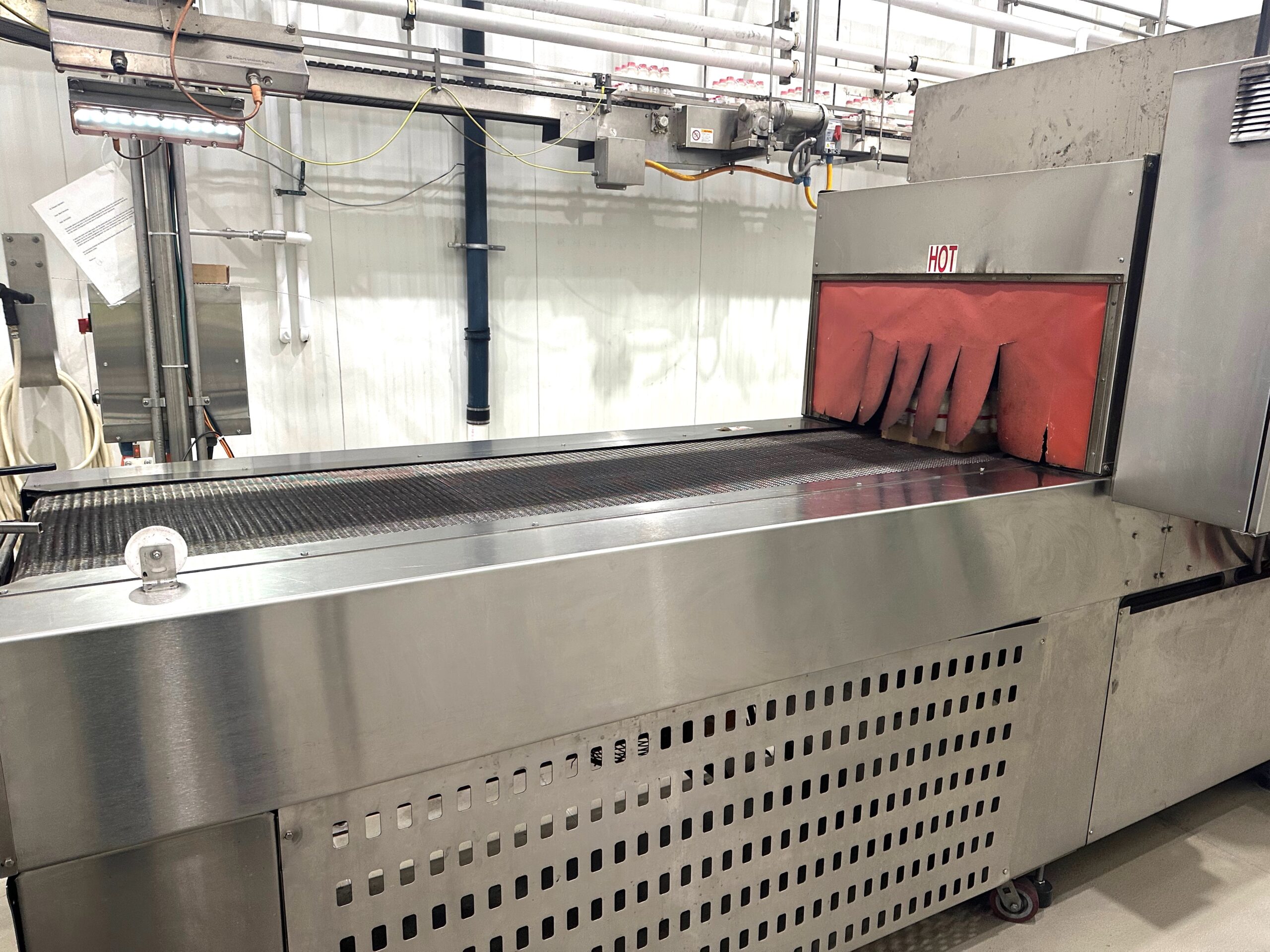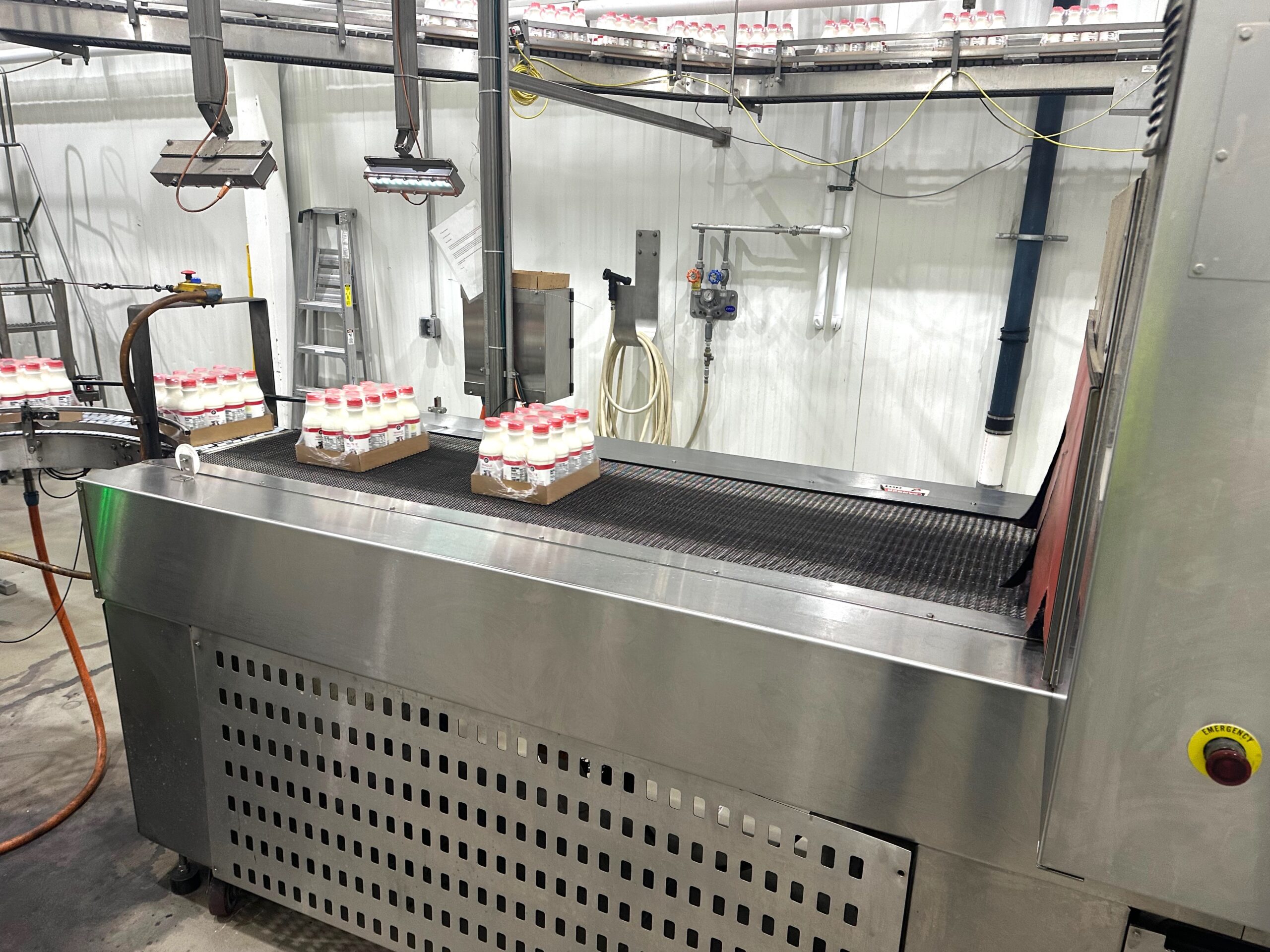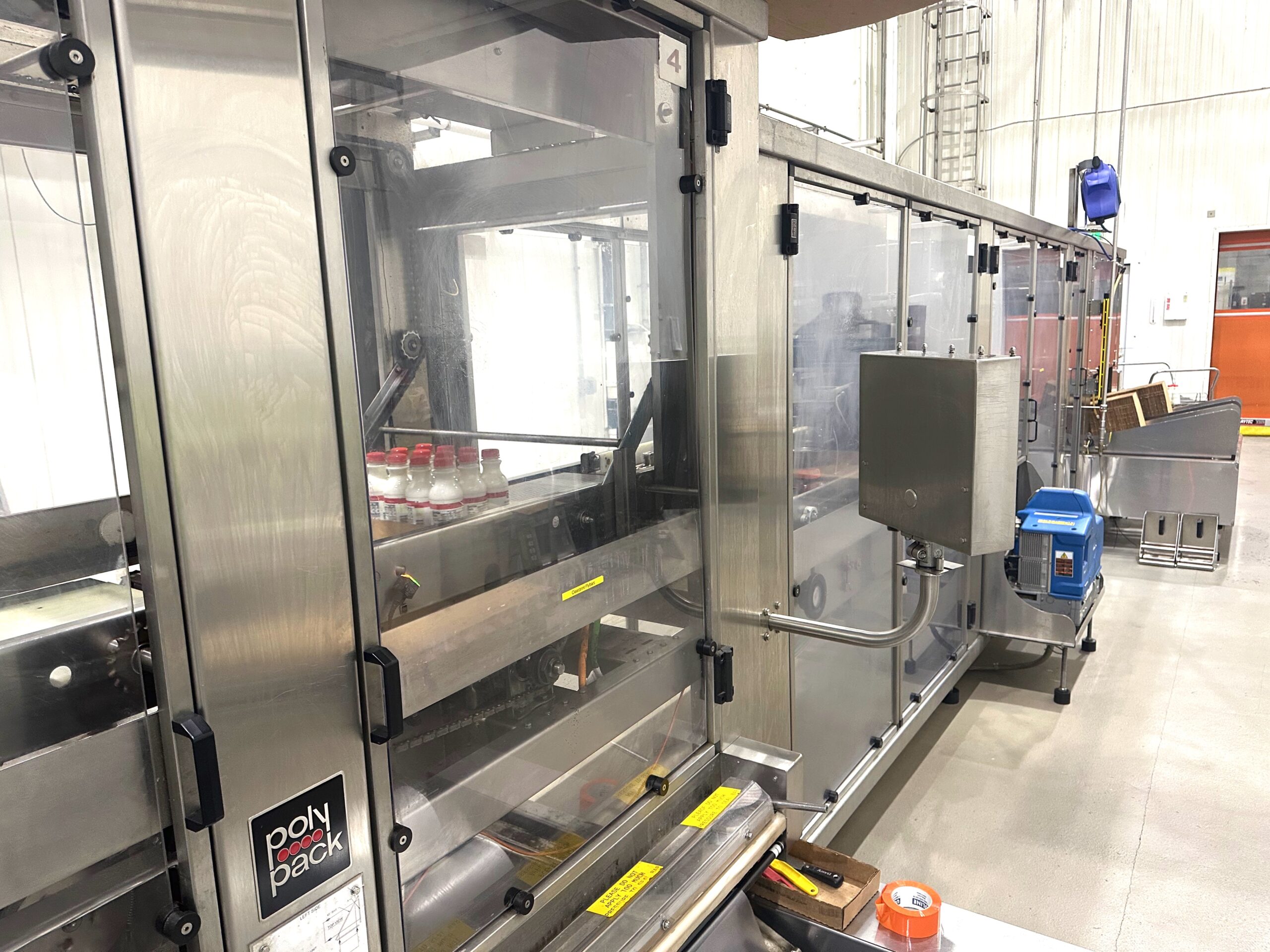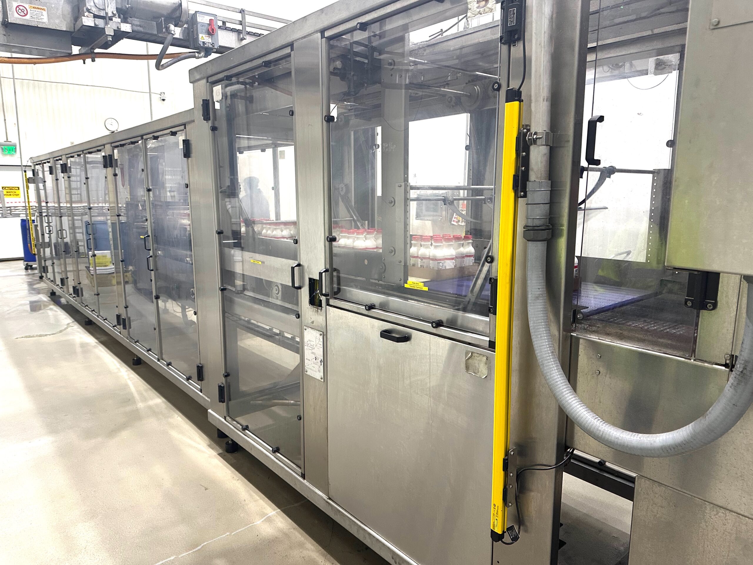 STAINLESS STEEL CONSTRUCTION, Installed in 2015, In Operation till October 2025, Continuous motion tray packer and Shrinkwrapper for PET, Glass Bottles or Canned Product, Will run trays + shrink film, Max Speeds up to 50 Cycles/Minute, See Package Patterns Below, Will function with end slotted trays with 90 Degree corners, Single Roll Shrink Wrapper to run clear or print film registration, Servo Controlled Film Feed Cutting and Wand Wrapping, Infeed/Discharge height of 49 inches, Lexan Guarded Doors with Safety Switches, Control Panel with Allen Bradley Compact Logix PLC with Panelview 1000 Plus Operator touchscreen, Allen Bradley Kinetix Servo Drives, Nordson ProBlue Glue System, 480 Volts, 3 Phase, 60 HZ, Manuals-Documentation Included