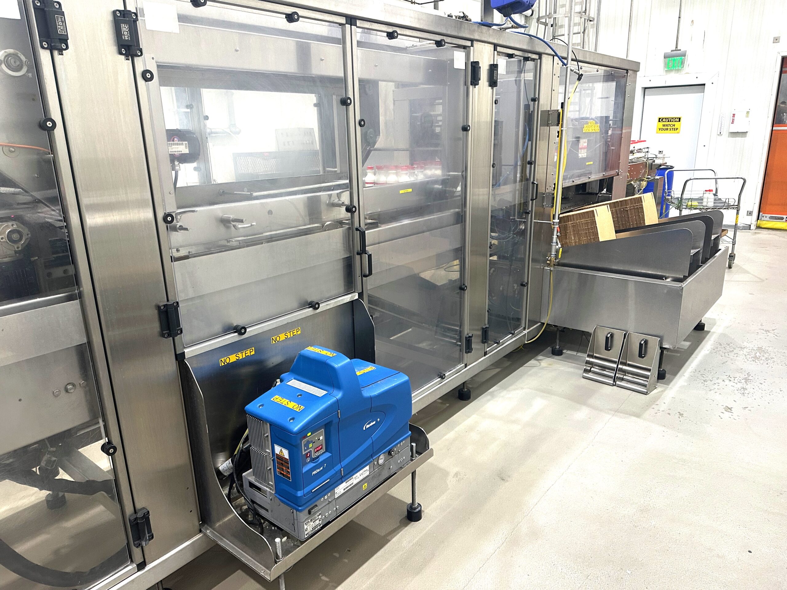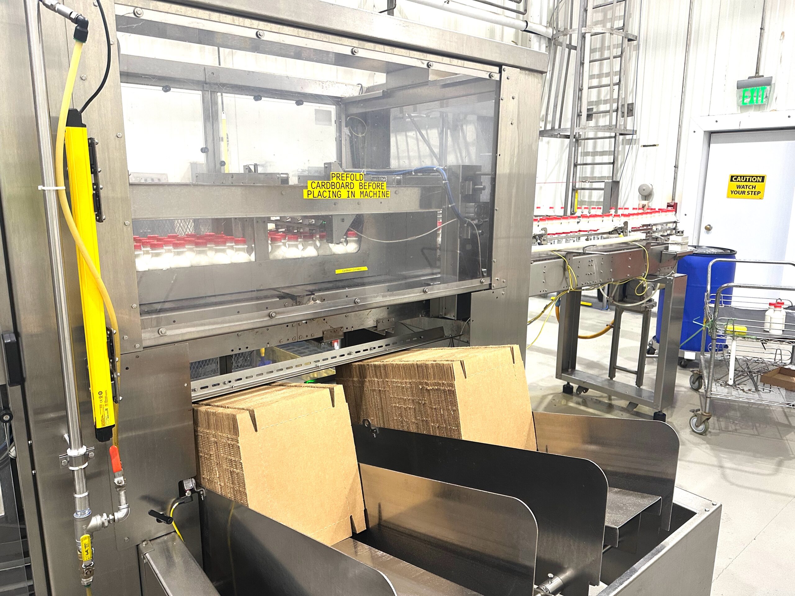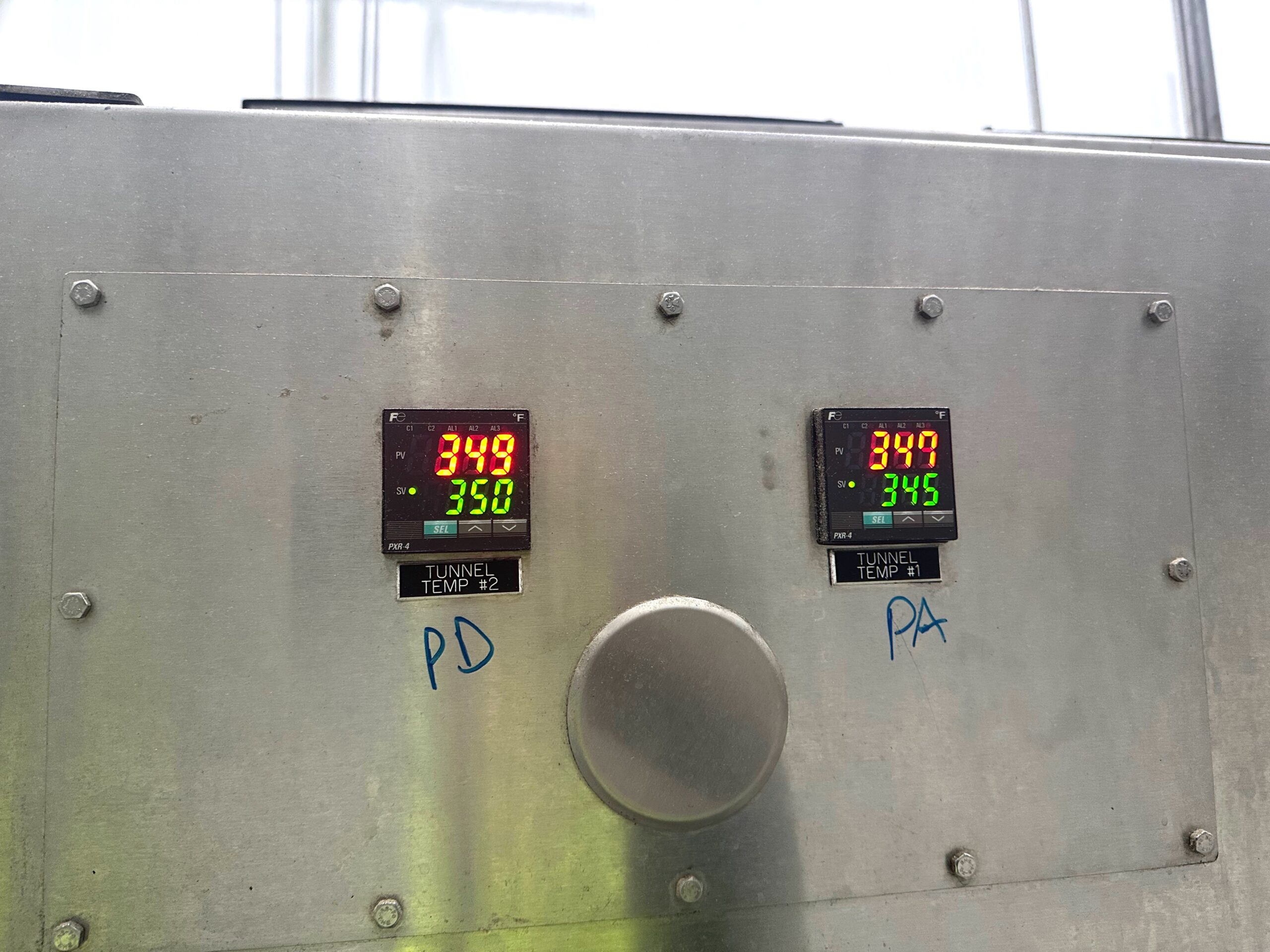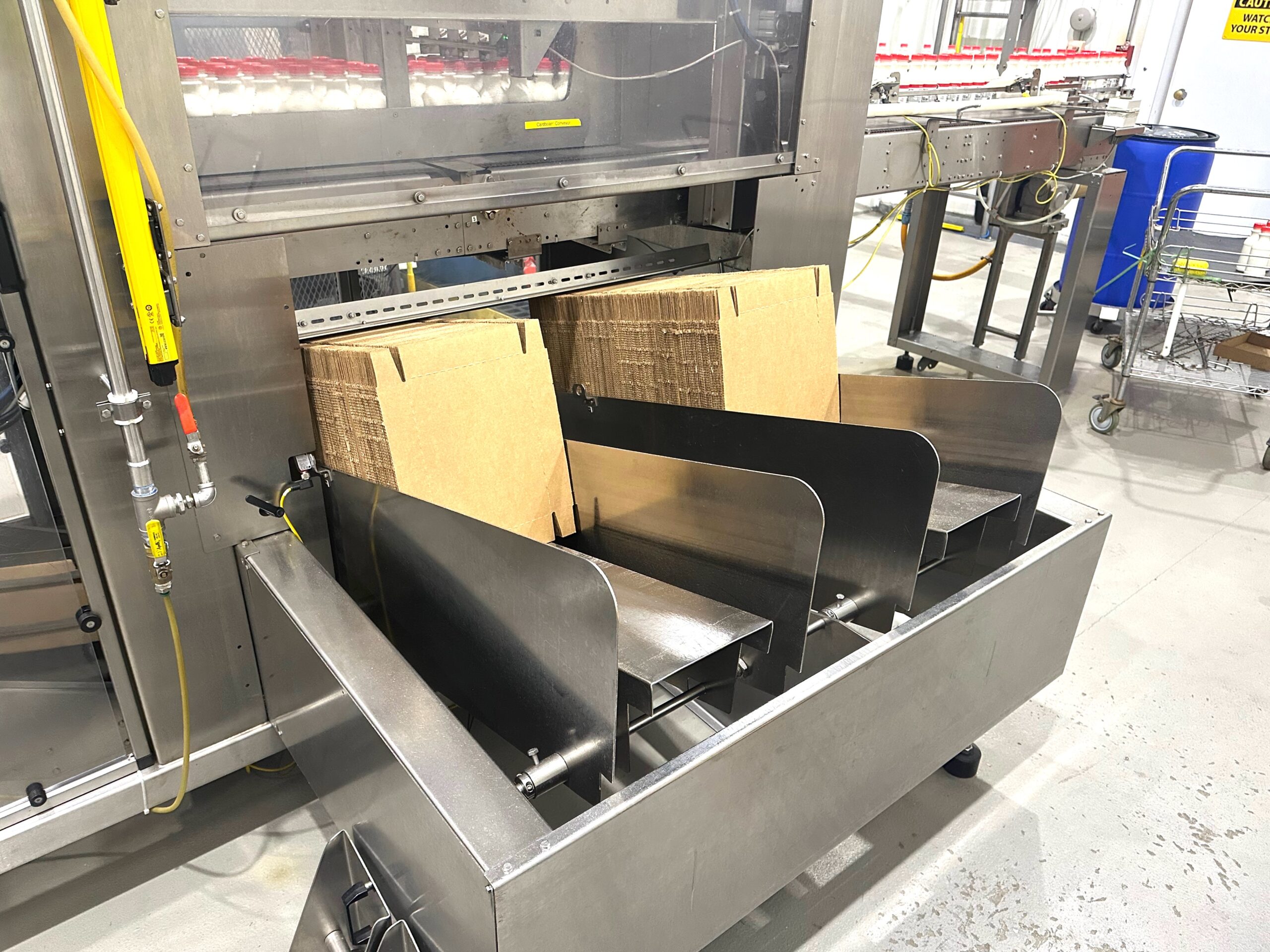 STAINLESS STEEL CONSTRUCTION, Installed in 2015, In Operation till October 2025, Continuous motion tray packer and Shrinkwrapper for PET, Glass Bottles or Canned Product, Will run trays + shrink film, Max Speeds up to 50 Cycles/Minute, See Package Patterns Below, Will function with end slotted trays with 90 Degree corners, Single Roll Shrink Wrapper to run clear or print film registration, Servo Controlled Film Feed Cutting and Wand Wrapping, Infeed/Discharge height of 49 inches, Lexan Guarded Doors with Safety Switches, Control Panel with Allen Bradley Compact Logix PLC with Panelview 1000 Plus Operator touchscreen, Allen Bradley Kinetix Servo Drives, Nordson ProBlue Glue System, 480 Volts, 3 Phase, 60 HZ, Manuals-Documentation Included
