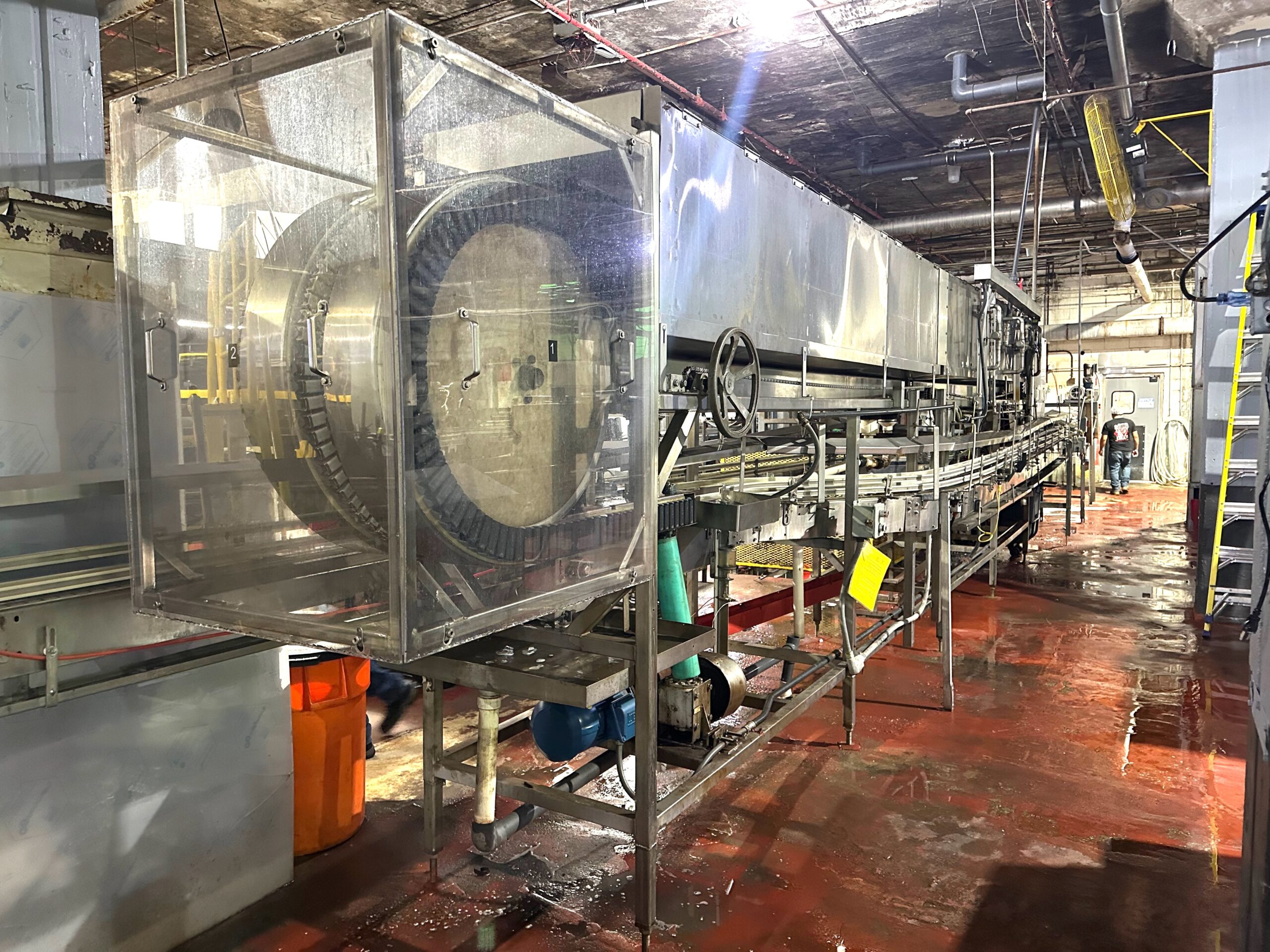 D Style Soft Touch Gripper Bubbles, Stainless Steel HP1873 Rexnord Chain, Water Rinser, Stainless Steel Construction, Last ran 16oz. Glass Bottles, Infeed/Discharge Elevation of 46.5″, Last Ran Production December 2025
