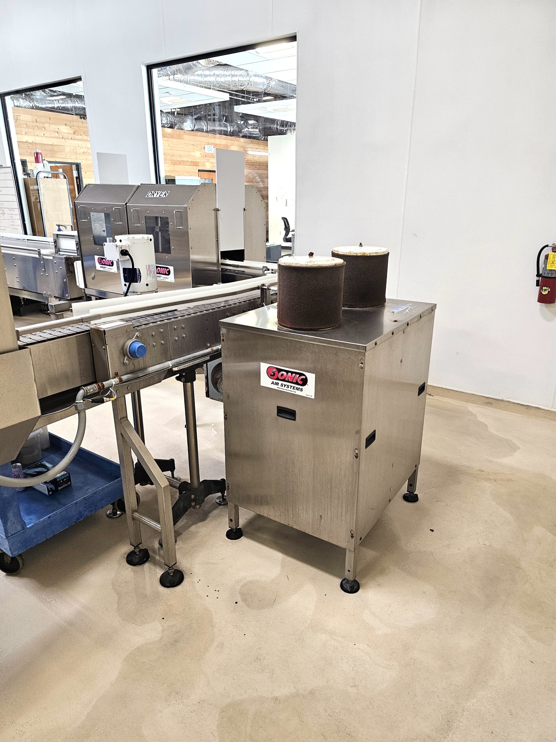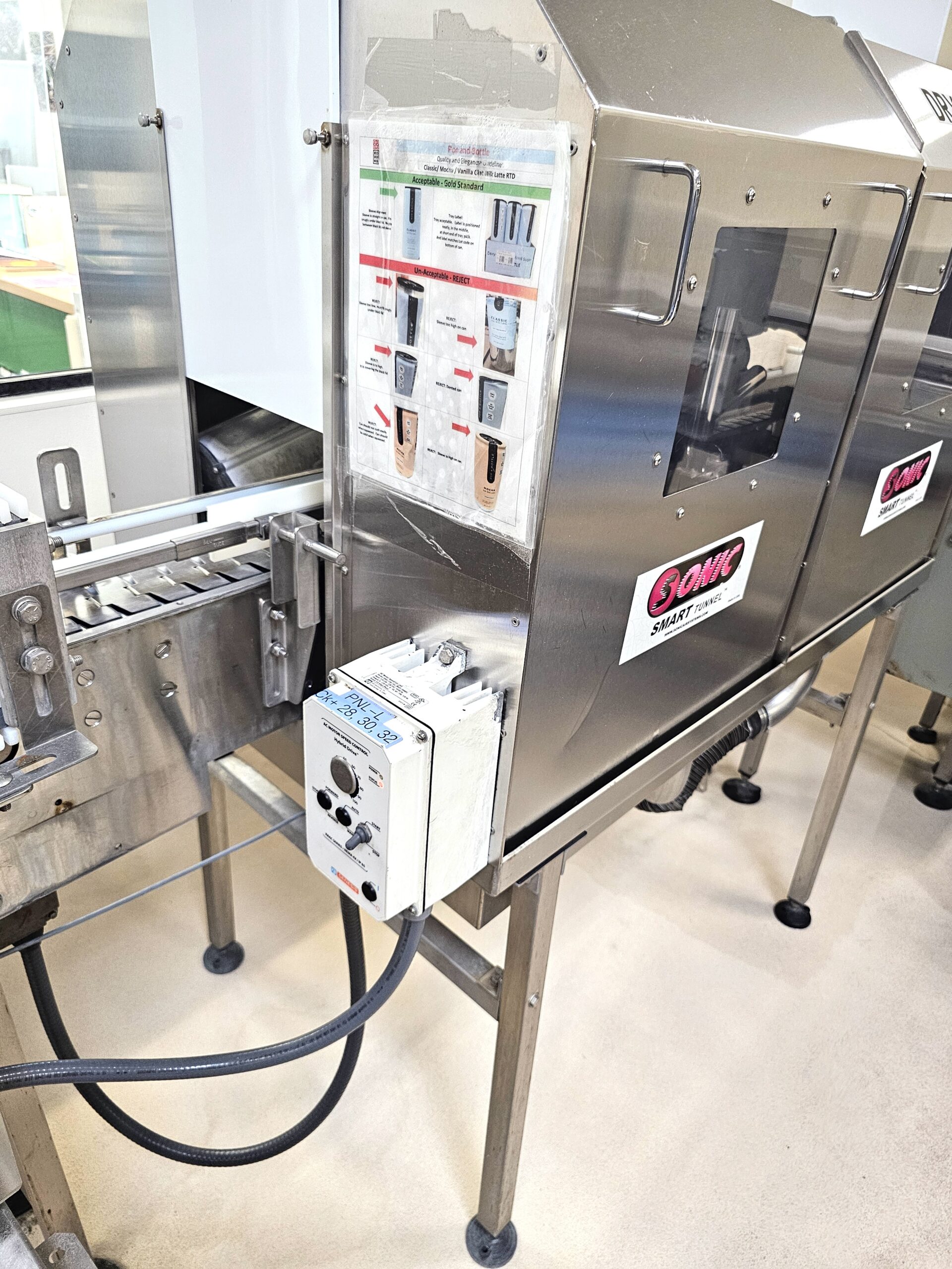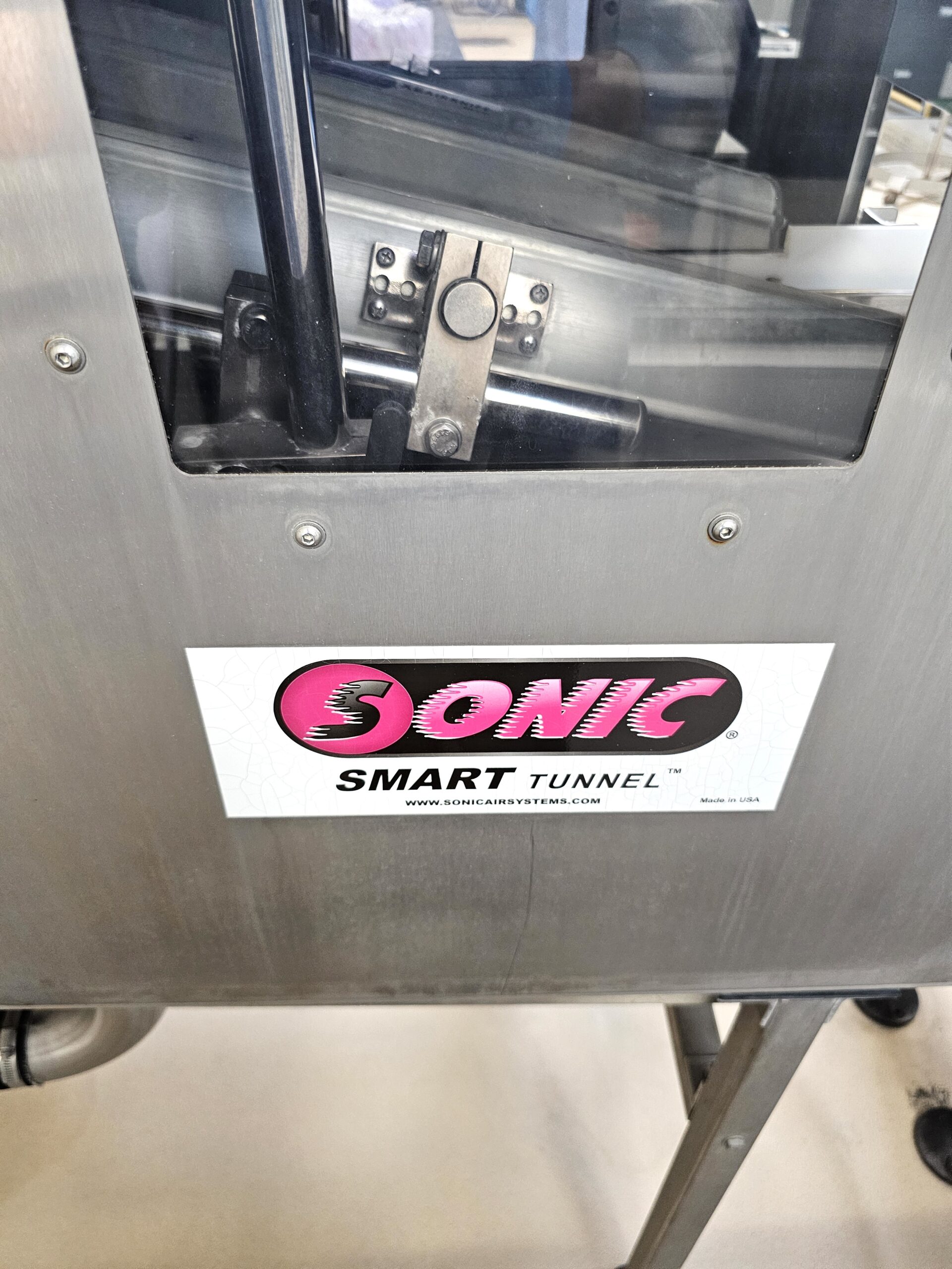 Aluminum Construction Air Knives, Stainless Steel Tunnel, Model 70 Air Blower Cabinet, Features (1) 24″ Air Knives and (1) 30″ Air Knives, Last setup in Beverage blowing off Aluminum Cans, New 2017