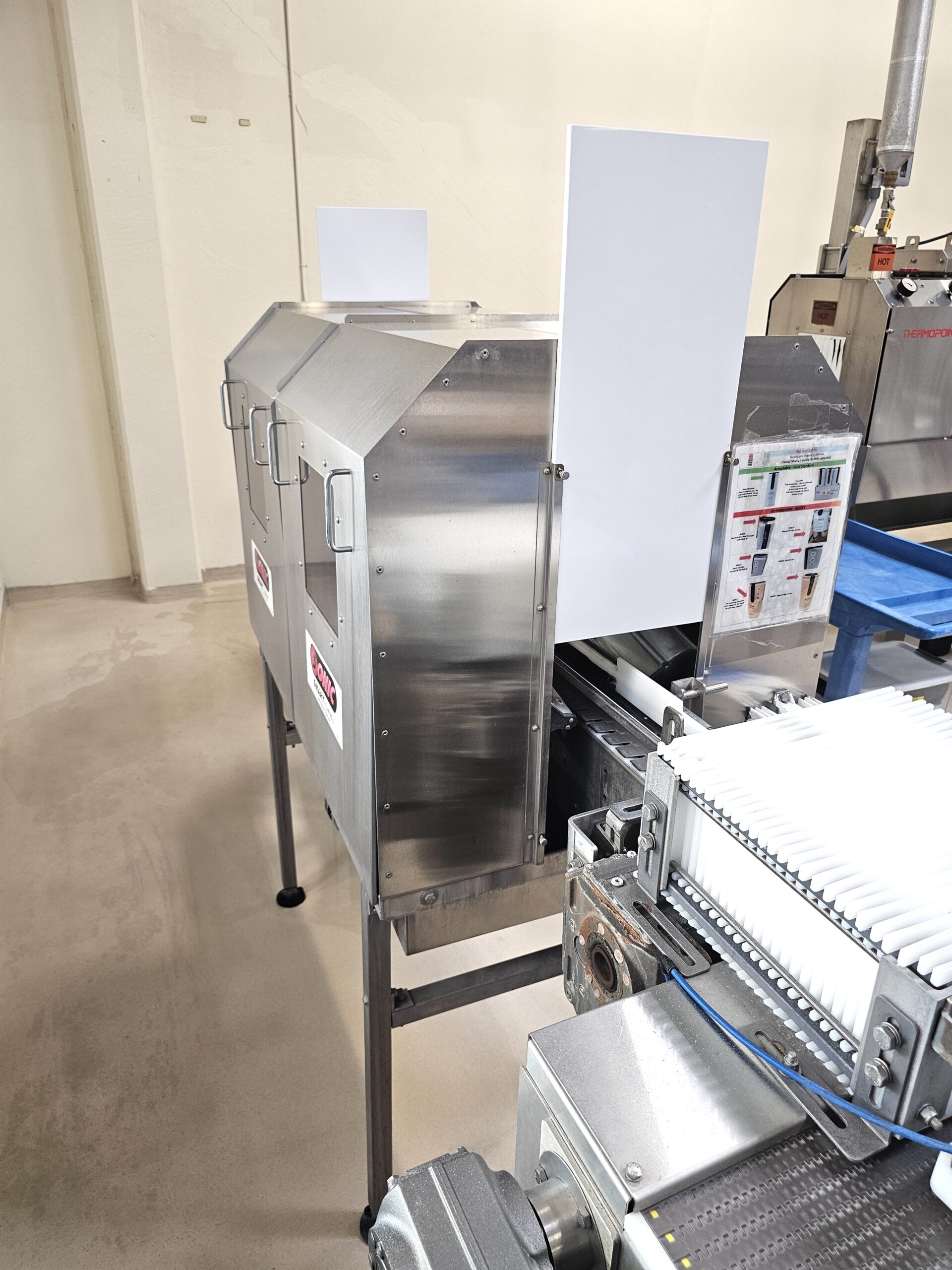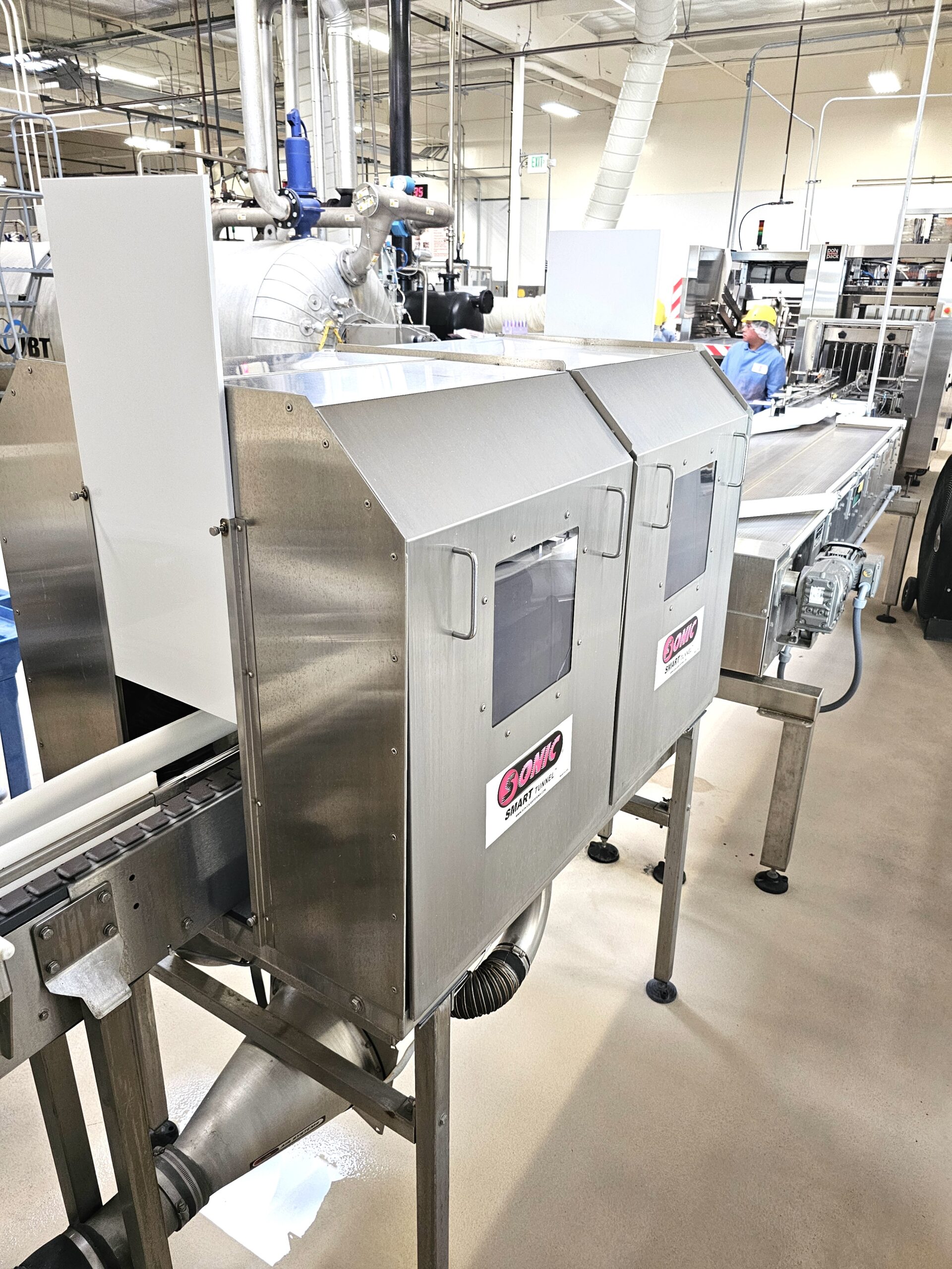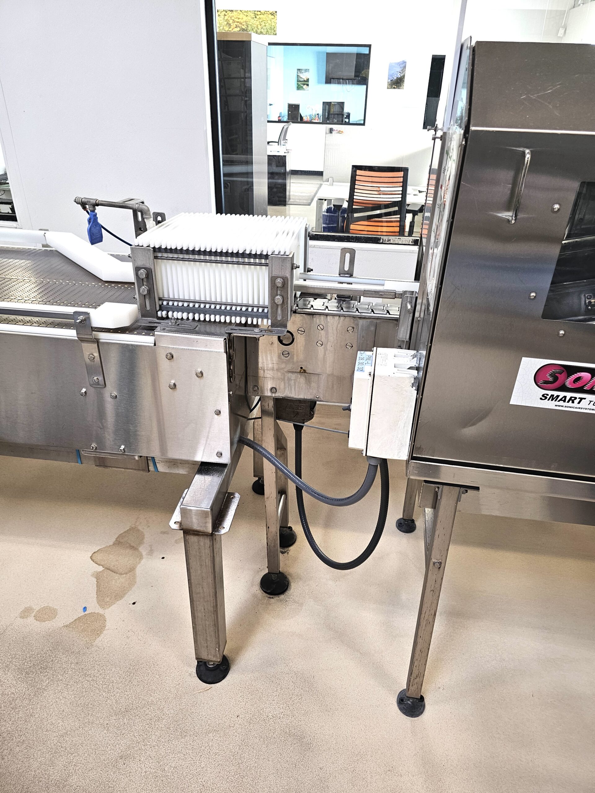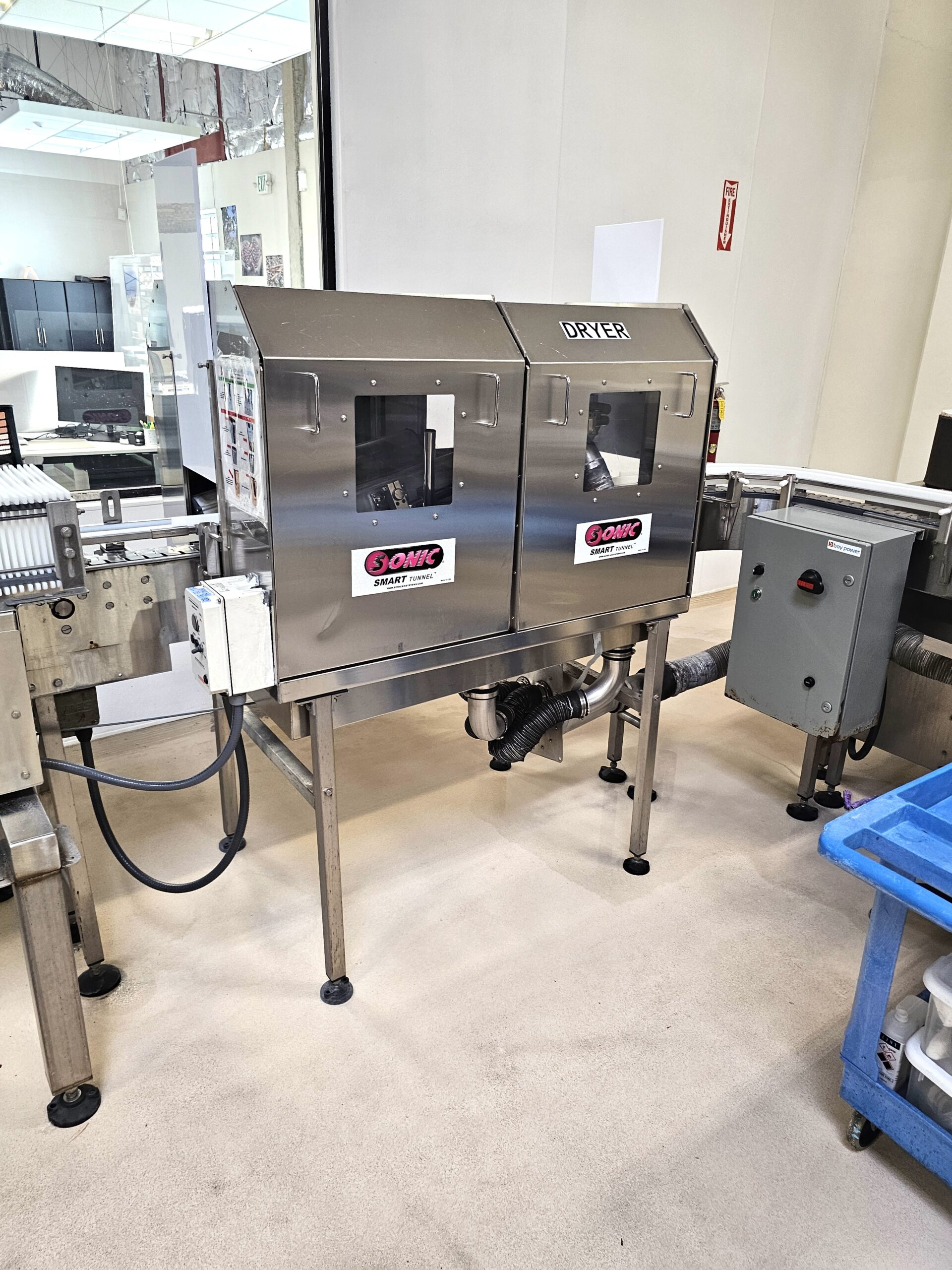 Aluminum Construction Air Knives, Stainless Steel Tunnel, Model 70 Air Blower Cabinet, Features (1) 24″ Air Knives and (1) 30″ Air Knives, Last setup in Beverage blowing off Aluminum Cans, New 2017
